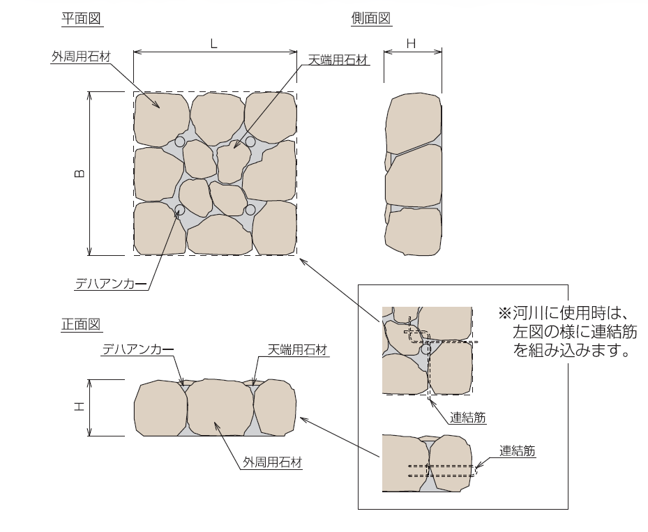 自然石塊根固被覆工「エスタロック」