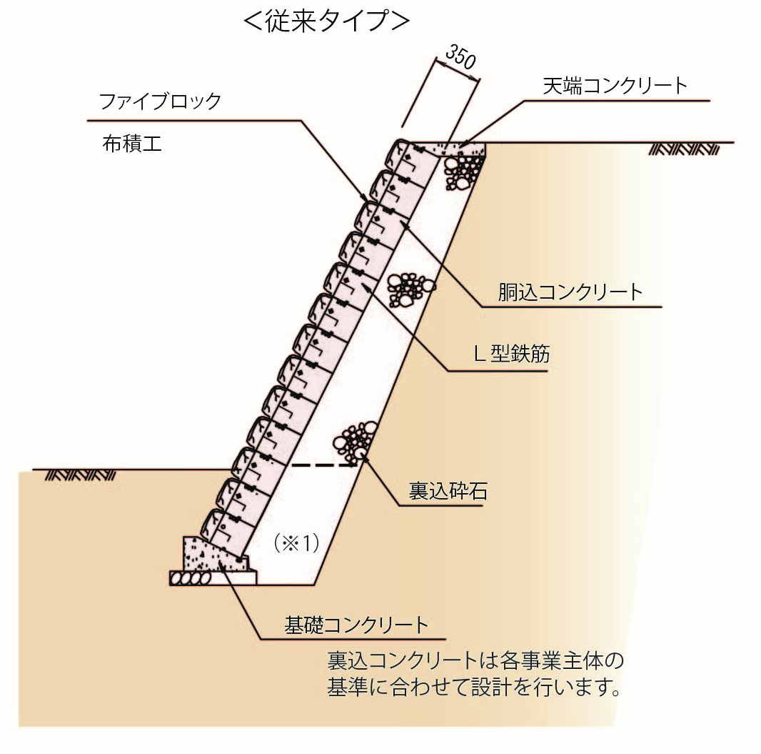 | 布積工-従来タイプ | 形状: L250mm ×W2,000mm ×H350mm |