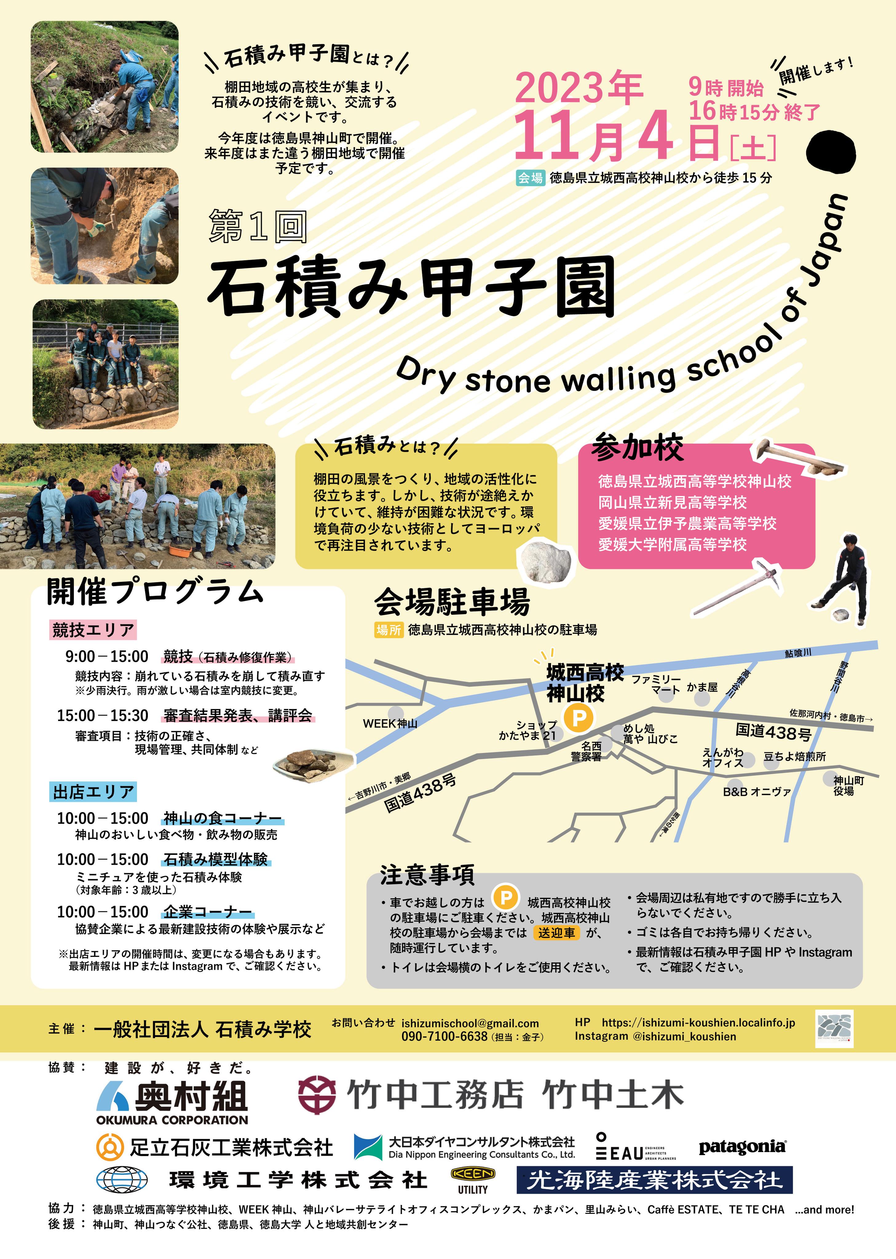当社は、2023年11月4日(土) 9:00より徳島県神山町にて(一社)石積み学校が主催する「第1回石積み甲子園」に協賛いたします。